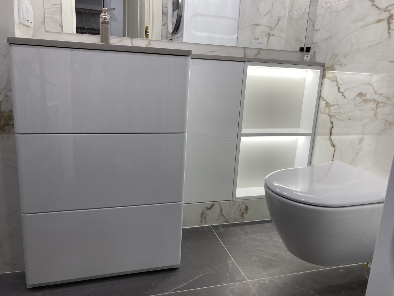 Столешница из акрилового камня с вырезмоми под накладные умывальники , вырез для полотенца